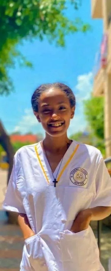 Bezawit Bekele is 20 years old and is a second-year Nursing student at Pharma College. It is a three year program, so she is on track to graduate next year and receive her diploma. To complete the nursing course, she moved from Yirgalem to Hawassa. She is currently sharing a room with multiple girls. She is mostly interested in caring for the sick, and helping the needy. She enjoys spending time connecting with her friends and socializing with new people. She is in need of regular support to help continue her schooling and start her career.